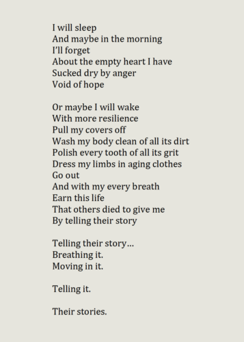 “Their Stories” was written late into the evening I discovered the death of Refaat Alareer. I reread “If I Must Die” several times that night. This poem is a call to earn the sacrifice so many gave so that we may live a life they couldn’t, and to remember them and tell their stories not only of resistance, but as ordinary people who one day hope to mourn their loved ones not from above rubble, but next to their bed as they leave this world of old age and long, happy lives.
