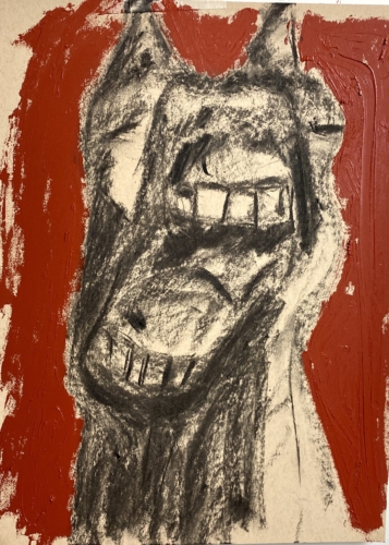 This piece illustrates the power of reconnecting to our ancestors and our roots as part of the process of decolonizing. The symbolism I use is connected to my own Celtic (Scottish and Irish) ancestors and their understanding of spirituality, nature and the elements. The oak represents the connection between this world and that of the ancestors and spirits. The hawk, a symbol of guidance and a messenger from the spirit realm, is shown breaking down the destructive power of white supremacy, exposing its role in genocide and death now as in hundreds of years past. In this piece I’m addressing one of many facets of the process of decolonization– the deconstruction and destruction of whiteness as an identity. This includes actively rooting out the ways in which that identity upholds and strengthens systems, beliefs, and institutions that center whiteness (the education system, healthcare, legal system, even approaches to issues like climate change, to name a few examples out of so so many). I also believe that an essential part of deconstructing whiteness is reconnecting to ancestral practices and knowledge that were erased or abandoned to construct a settler colonialist identity.