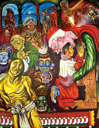 My colonized name is Joe Galarza, my Indigenous name is Pepeyotl which means ‘One who Gathers Medicine’. I am a painter, muralist, sculptor, ceramicist, musician, and arts educator from El Sereno, Los Angeles and I use art as a decolonizing tool. My roots are Penatuka Numunu Comanche/Tepehuan Odam Nations.